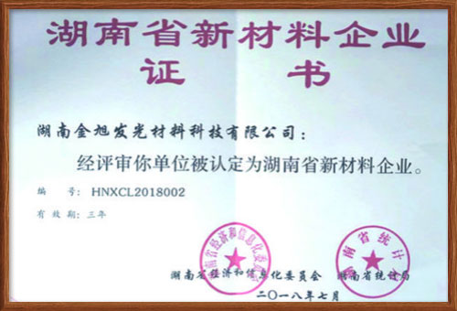 湖南金旭發(fā)光材料科技有限公司于 2016年成立,注冊資金1000萬元,是一家專業(yè)從事蓄能自發(fā)光反光材料的研發(fā)、生產(chǎn)與銷售的高新技術(shù)企業(yè),于2018年獲得省工信廳認定的省級新材料企業(yè)。